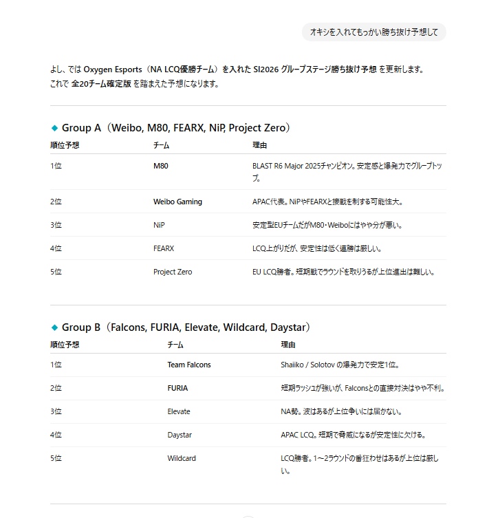 チャットGPTに聞いたインビ予選勝ち抜けチーム